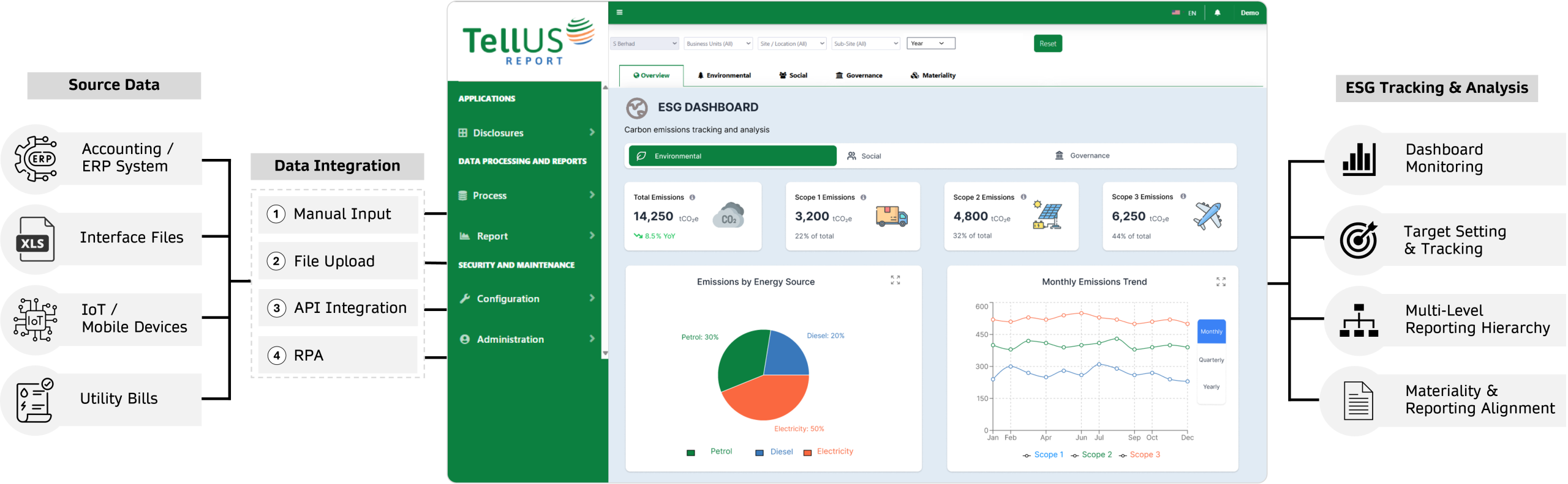 Consolidates ESG data from multiple branches or subsidiaries for complete visibility